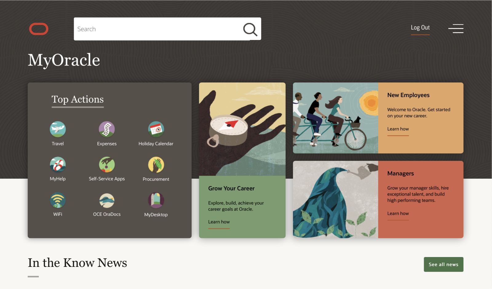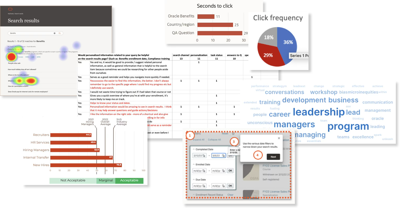 Partnered with Global UX Leadership to define the enterprise-wide deployment of the Redwood Design System and Ask Oracle AI. Facilitated C-suite and SVP briefings, embedded Design Thinking into HR leadership strategy, and pioneered the expansion of DEI and ERG content across the global intranet. During a hiring freeze, personally contributed IC production to ship a bespoke customizable dashboard.